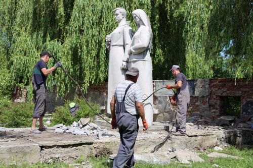 Демонтаж монументу відбувся згідно відповідного рішення сесії. Знесли композицію скульптури жінки й воїна, вічний вогонь у вигляді металевої зірки, чотири пам’ятні таблиці та стелу з іменами та прізвищами похоронених, пам’ятну таблицю з наказом сталіна про визволення міста, пам’ятний знак з переліком військових частин та пам’ятну таблицю на місці поховання.