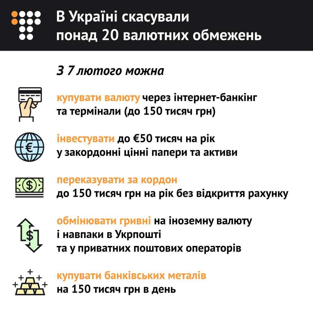Віднині, зі 7 лютого, в Україні почав діяти закон, що знімає понад 20 валютних обмежень.