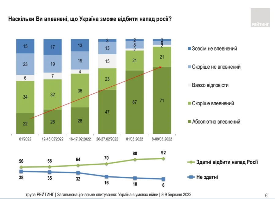 Нагадаємо, станом на 1 березня у перемогу вірили 88% опитаних українців.