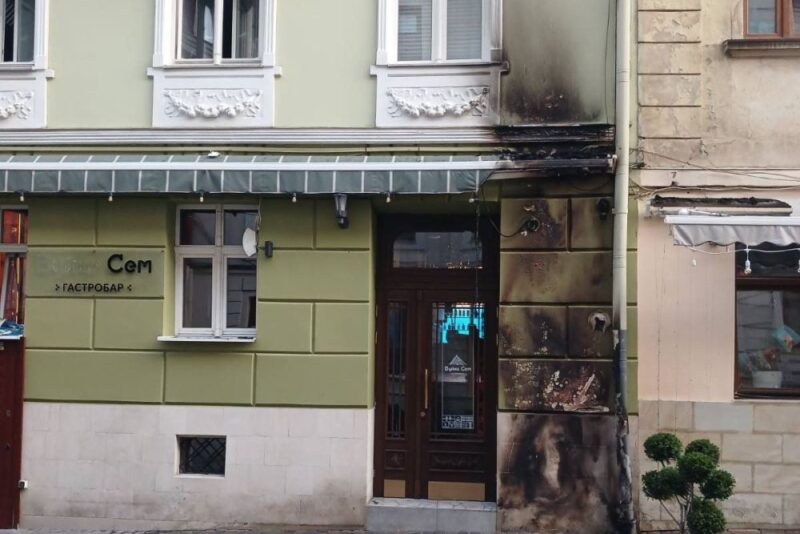Будівля, розташована неподалік пам’ятника Степана Бандери, вигоріла вщент. Також постраждали будинки, розташовані поряд.