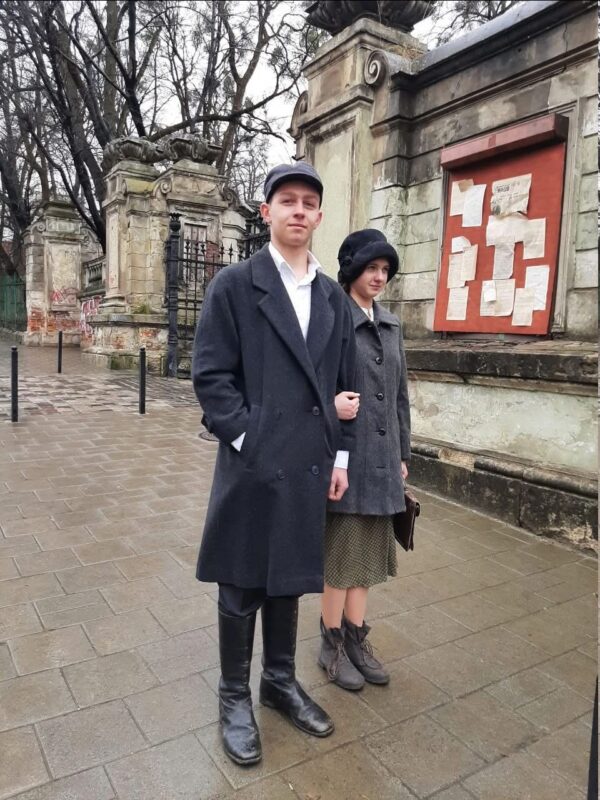«Частину речей надавали музеї та реконструктори. Інше шили власноруч за історичними зразками. Також велику кількість речей нам давали люди, коли я виставляв прохання у соцмережах. Ми дуже уважно ставилися до деталей — ґудзик, крій, шрифт на листівці — усе має відповідати епосі», — зазначає отець Михайло.