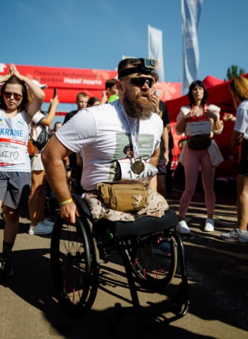 34-річний військовий Андрій Соломін в межах Першого безбар’єрного марафону Нової пошти виборов золото у «Забігу за двох». Боєць втратив на фронті обидві ноги та пережив клінічну смерть, і навіть прощався з життям з думкою про полеглого друга, проте місяці опісля в пам’ять про нього здолав 1 км на марафоні. Про це повідомили у Львівській міській раді.