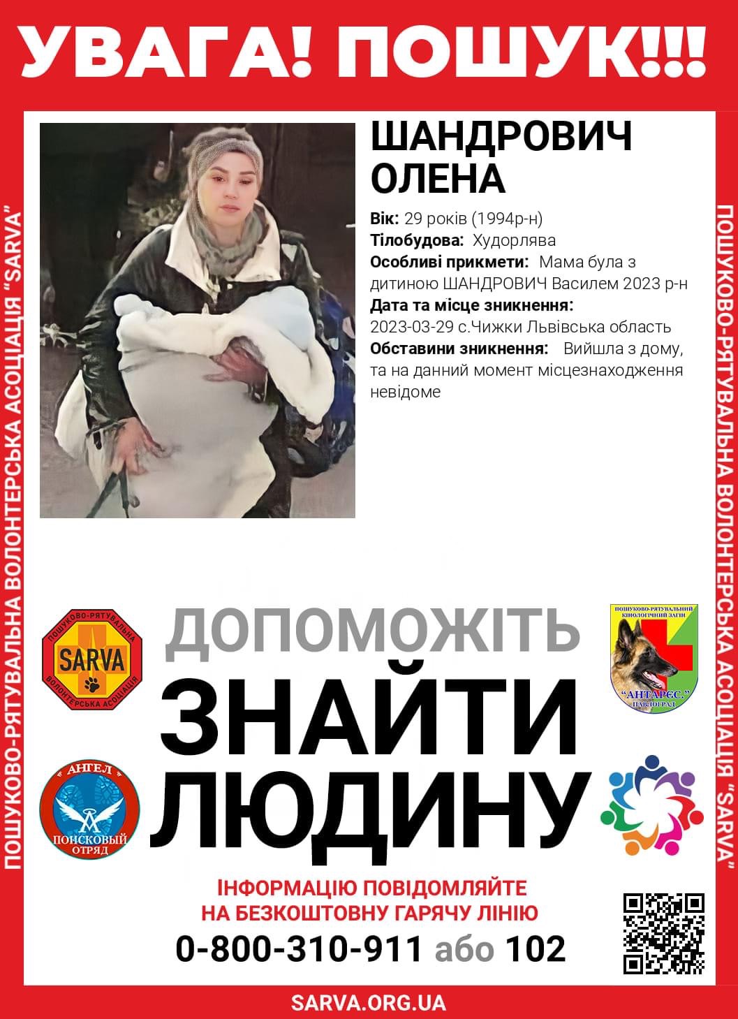 Особливі прикмети: була з дитиною Шандровичем Василем 2023 р-н.