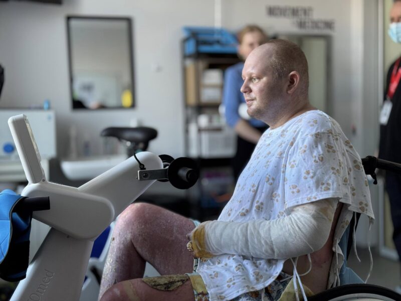 Ще під час перебування в інтенсивній терапії з отцем Андрієм почав займатися фізичний терапевт. Вони виконували різні вправи для того, щоб не втратити м’язову масу та уникнути ускладнень з боку дихальної системи. Нині пацієнт вже перебуває у звичайній палаті, сам дихає, говорить, сідає та харчується. Завдяки регулярним заняттям вдалося повністю відносити амплітуду рухів в нижніх кінцівках, а от з верхніми ситуація складніша – ще потрібно працювати.