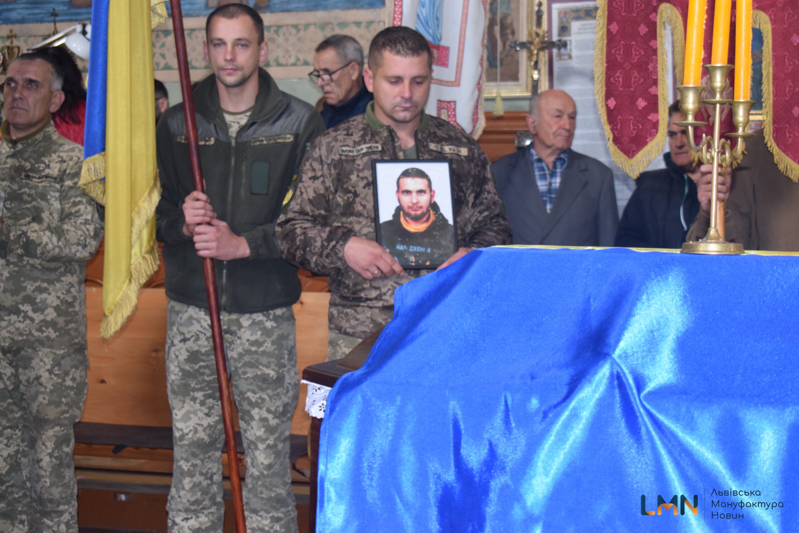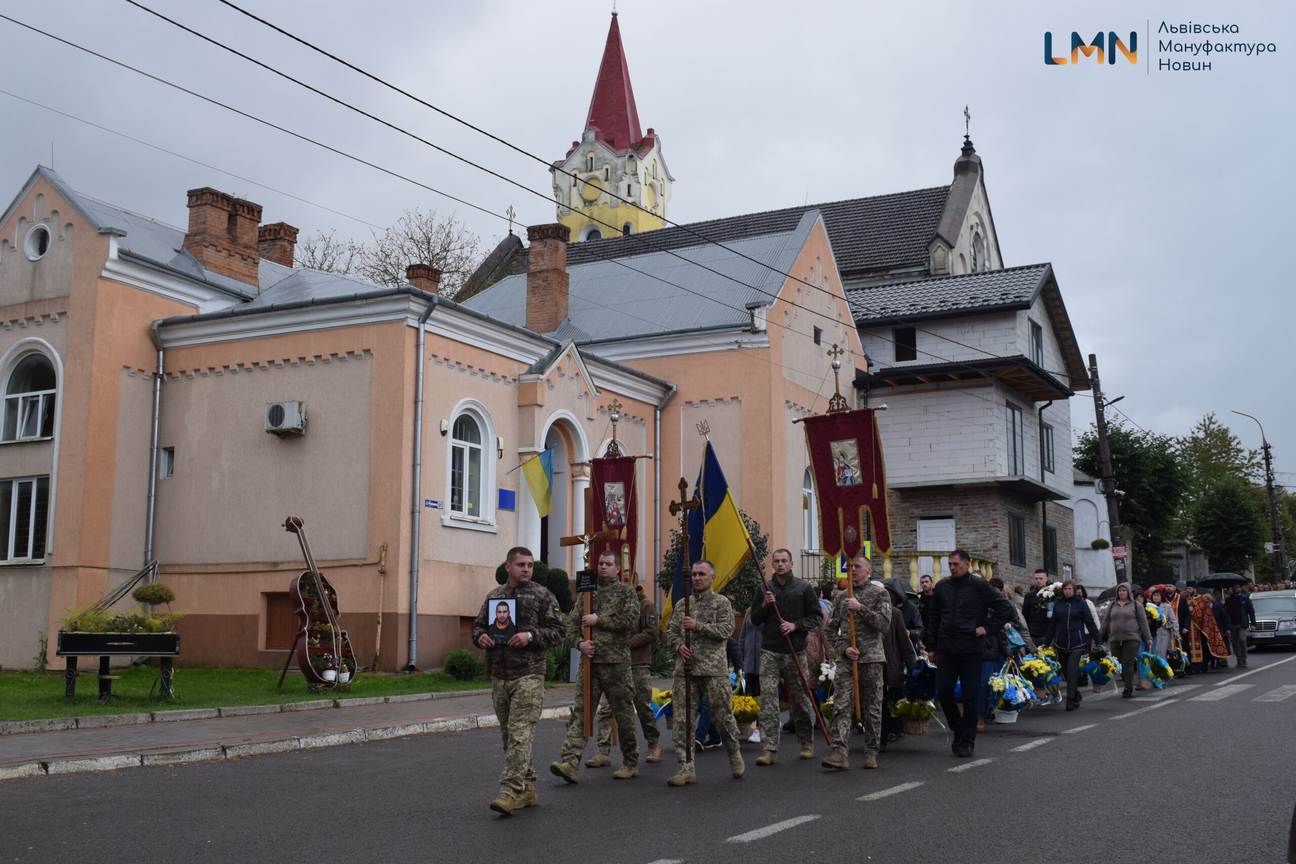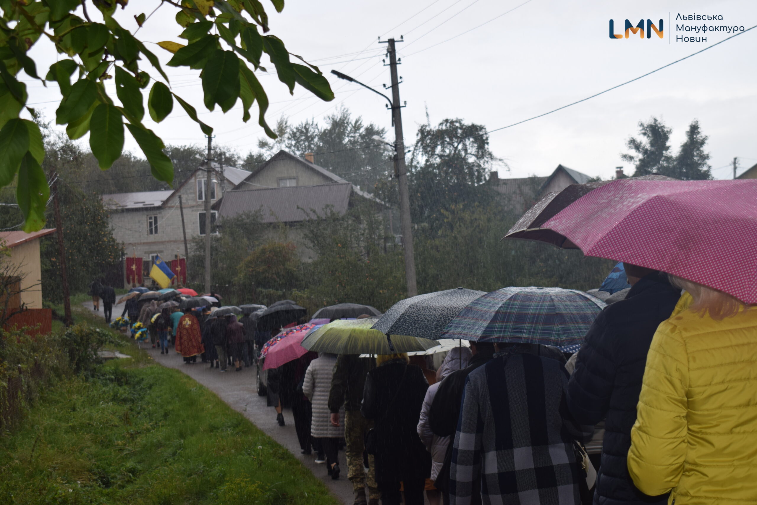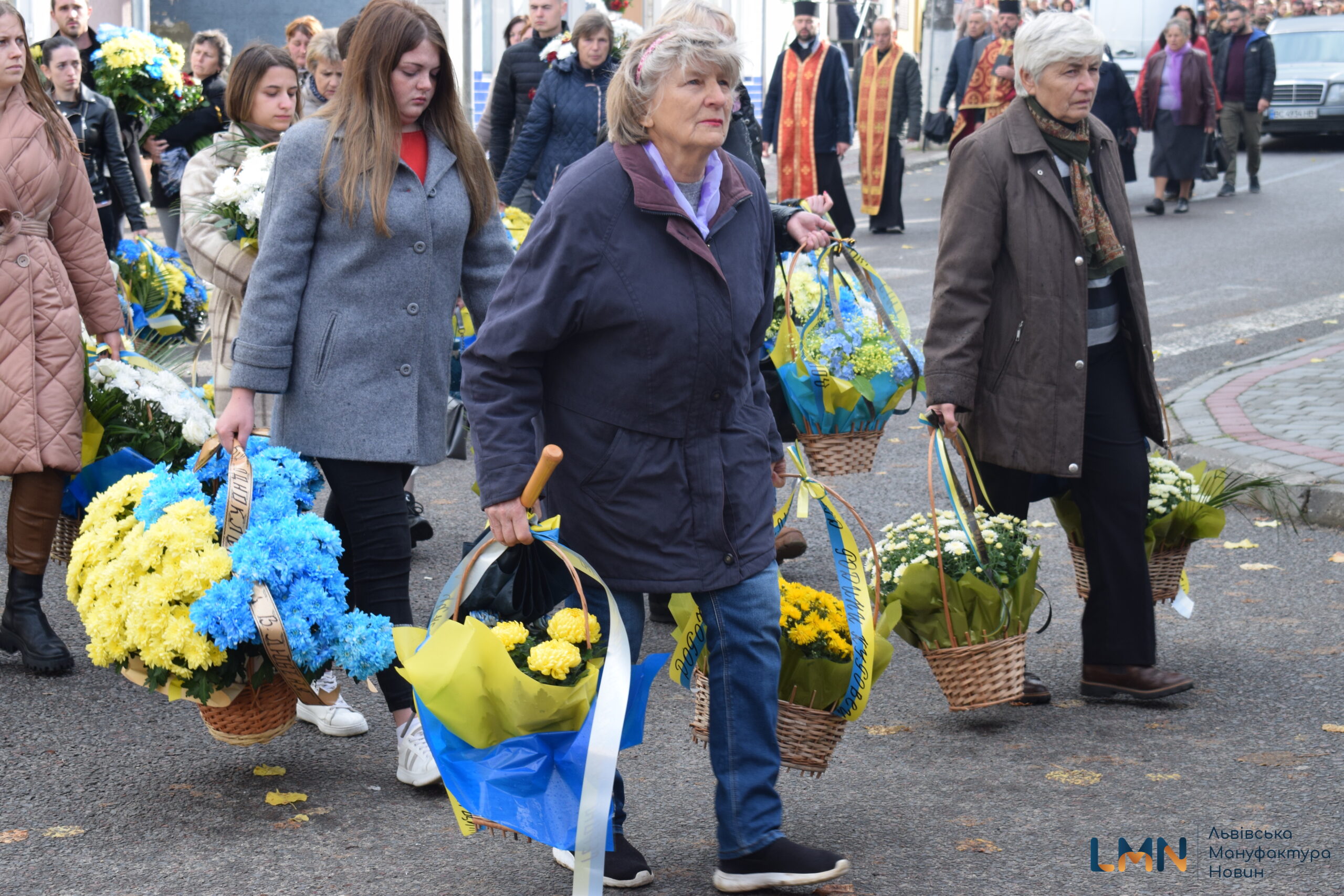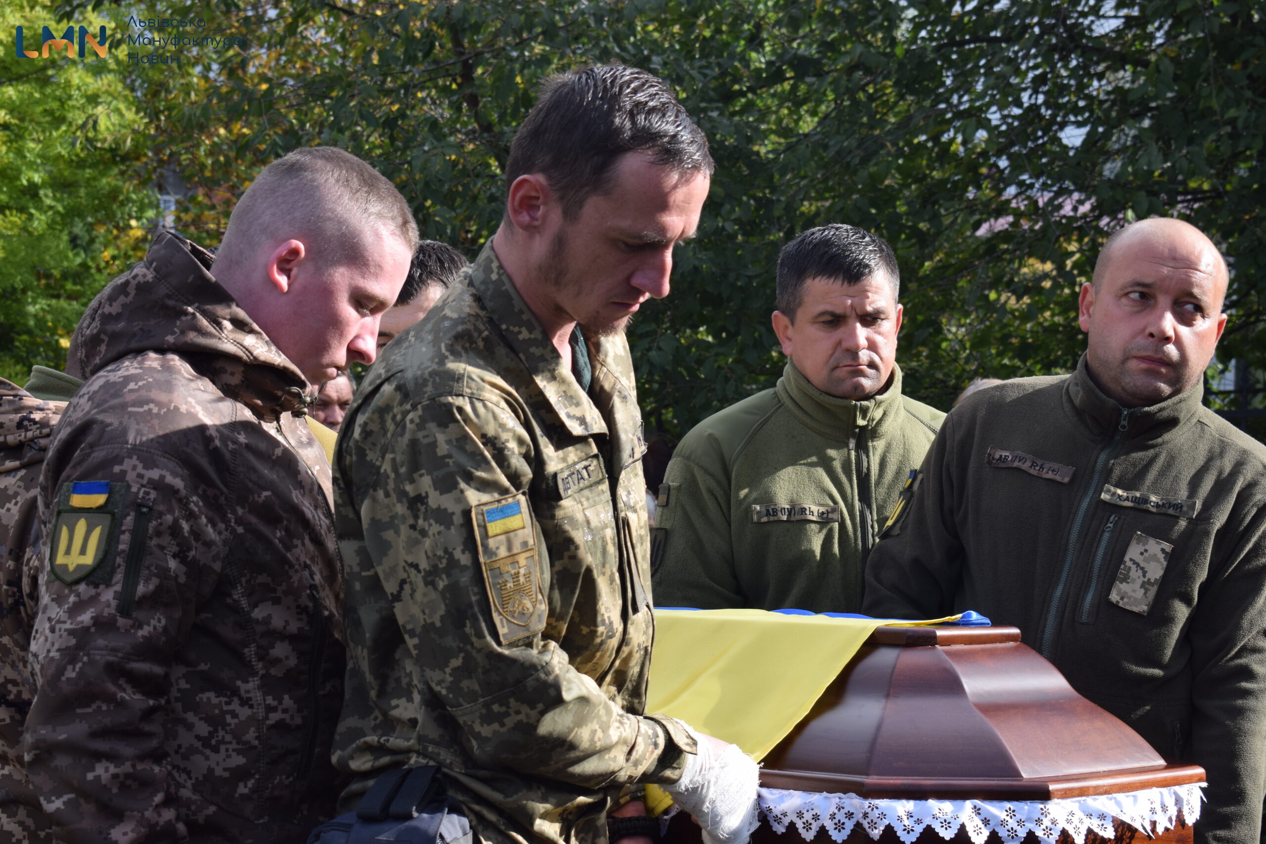 Попрощатись з Героєм прийшли сотні старосамбірчан – на доглянутому подвір’ї ніде було яблуку впасти. Прийшли з синьо-жовтими квітами та білими айстрами. Василя в останню дорогу на кладовище провели і військові, які наразі тут.