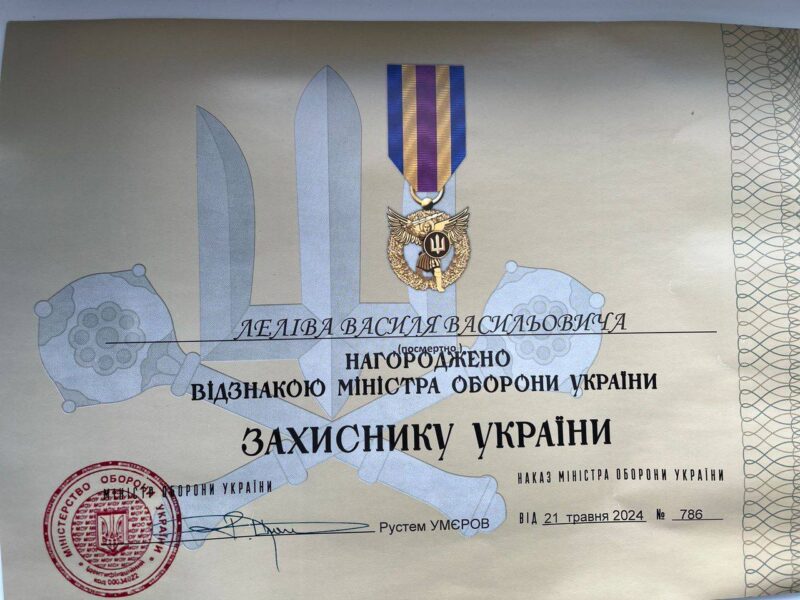 Загиблого захисника зі Стрийщини Василя Леліва нагородили відзнакою Міністра оборони України «Захиснику України» посмертно. Про це повідомили у Львівській ОВА.