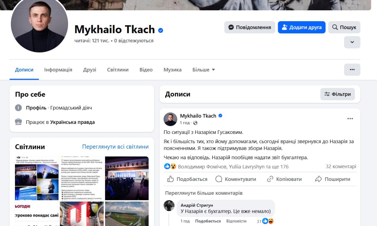 17 червня користувачі виявили, що на криптогаманцях Гусакова пройшли операції на понад 2,7 млн доларів. Від нього одразу ж почали вимагати звіт: скільки зібрав, на що витратив. Гусаков у відповідь заявив: звіти ще готуються, а частину ліків купував “неофіційно” — мовляв, дешевше.