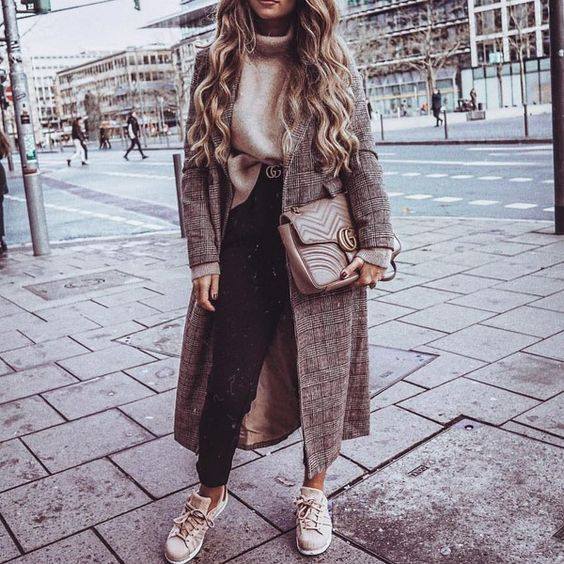 Катерина Дорошенко стверджує, що взувати під пальта кросівки – класика. Але варто пам’ятати, що верхній одяг має бути лише прямого крою. В жодному разі не приталений.